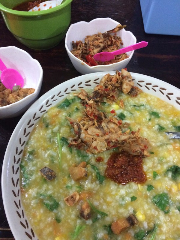 Bubur Menado plus sambal dan ikan roanya ... Mantap !! -Gabriel