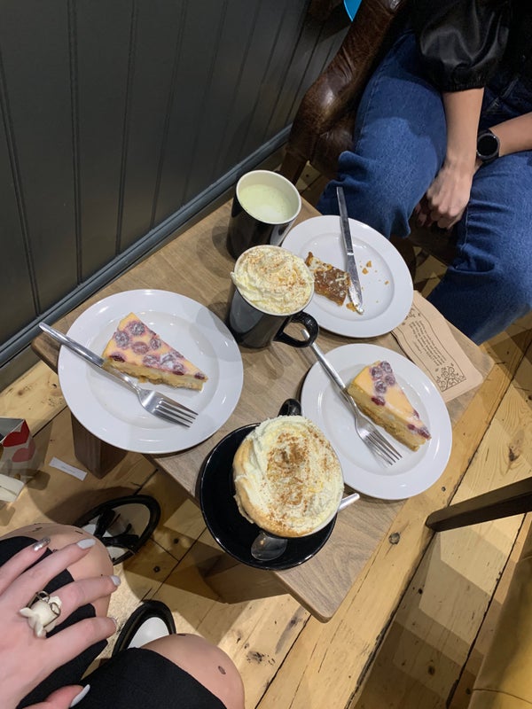Their coffee taste is one of the best in town! I also like the strawberry cheesecake. -Manar